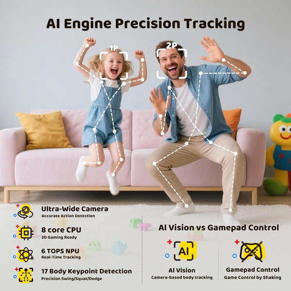 Simply connect it to your TV via HDMI. No controllers needed—kids use their body movements to play.